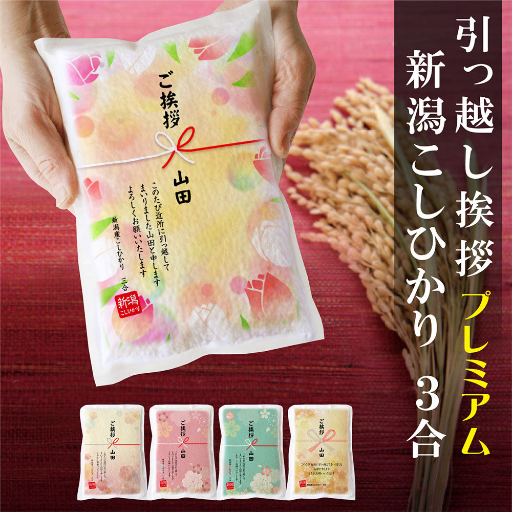 お引越しのご近所挨拶にご利用いただける三合パックのお米です。